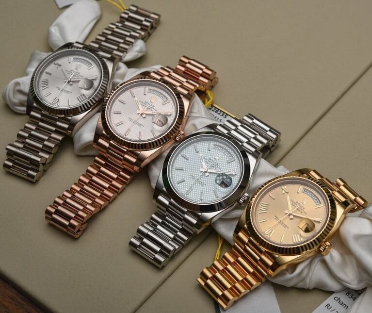 Although you can only choose 40mm, they have a lot of dials and materials. These watches can be divided into four categories by material. Stainless steel is not included, of course, as these luxury replica Rolex Day-Date 40 watches are only available in precious metals.